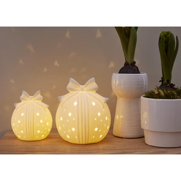 In bordsdekoration i vitt porslin. Drivs av 2xAAA batterier. Perfekt till julbordet och ger en mysig känsla i ditt hem. Rozy finns tillgänglig i två storlekar.