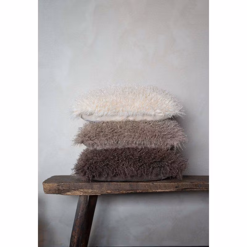 Info | Kuddfodral gjord i pälsimitation av tibetanskt fårskinn, med en baksida av konstgjord mocka som ger den en mjuk och varm känsla. |