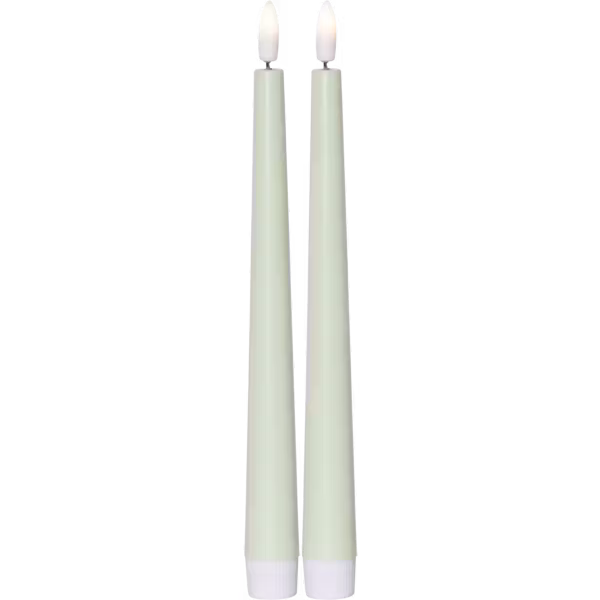 Flamme Candy antikljus är ett batteriljus som finns i flera snygga färger, gjord av plast och har en brinntid på 400 h. Den lyser med varmvitt sken och har vår realistiska låga Flamme. Med inbyggd timer lyser den i 6 timmar. Den drivs av 2x2 AA batterier, dessa ingår ej. Storlek 2,3x26 cm.