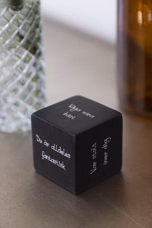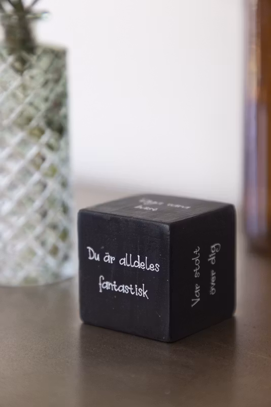 Hem › ALLA PRODUKTER › Kloss med positiva texter 5*5cm Kloss med positiva texter 5*5cm I lager. 0 kr 49 kr Färg Svart Beige Köp Flera populära produkter Narciss 15cm 1 vit+1gul 18 kr Läs mer "Svart peppar & Papyrus" Doftpinnar 50ml Klinta 249 kr Läs mer Teljus Gula 20-pack 4h brinntid 99 kr Läs mer Paris Chic - Refill doftpinnar - Maison Berger Sweden 179 kr Läs mer