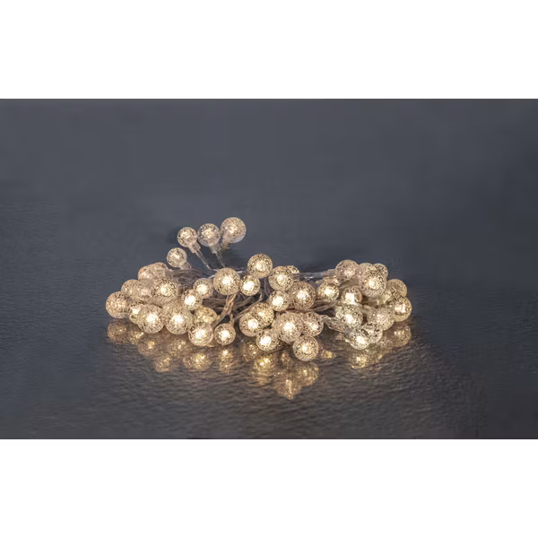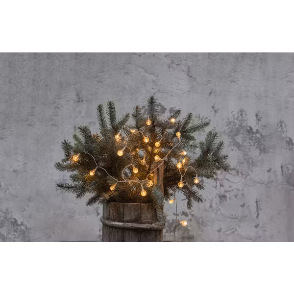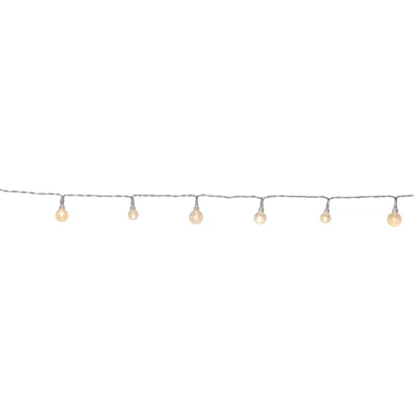 Ljusslinga med 50 varmvita LED-ljuskällor för utomhusbruk. Bubbeleffekten i höljena ger ett härligt sken. Dekorera partytältet, kalaset och terrassen med denna fina ljusslinga. Slingan är 5 meter lång med transparant kabel.
