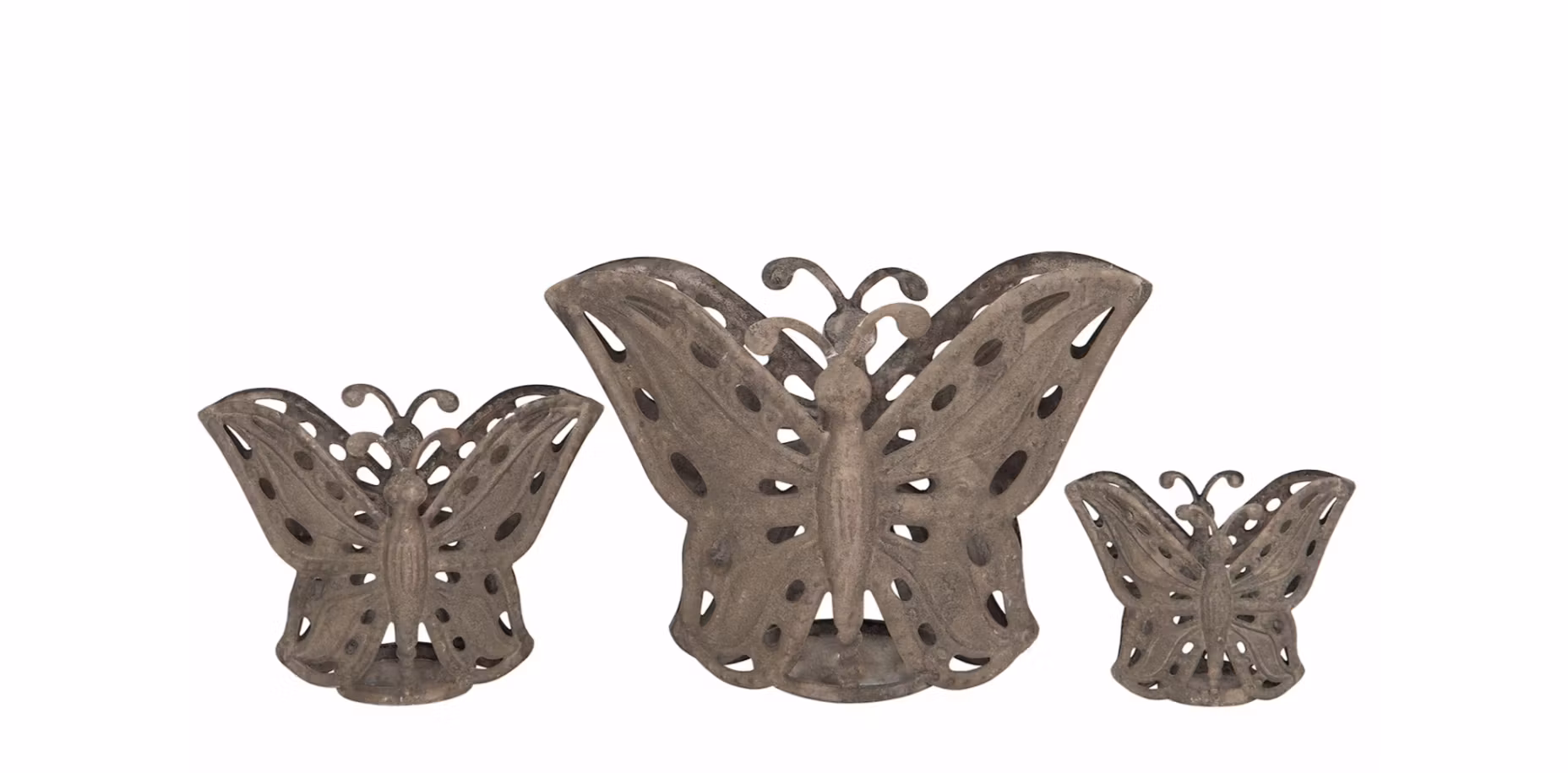 Set med tre fjärilsformade lyktor i metall. Passar perfekt med något av våra blockljus eller värmeljus.