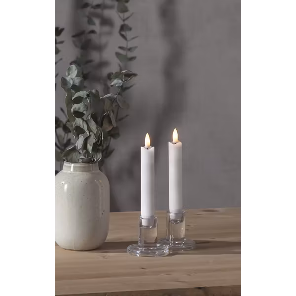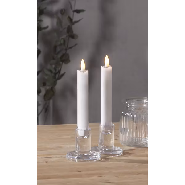 2p korta antikljus. Tillverkade utav äkta vax med en mycket naturtrogen låga som lyser med varmvitt sken. De har en inbyggd timer som gör det enkelt att bestämma när de ska lysa. Undvik att ställa dem i direkt solljus då de kan smälta av värmen.